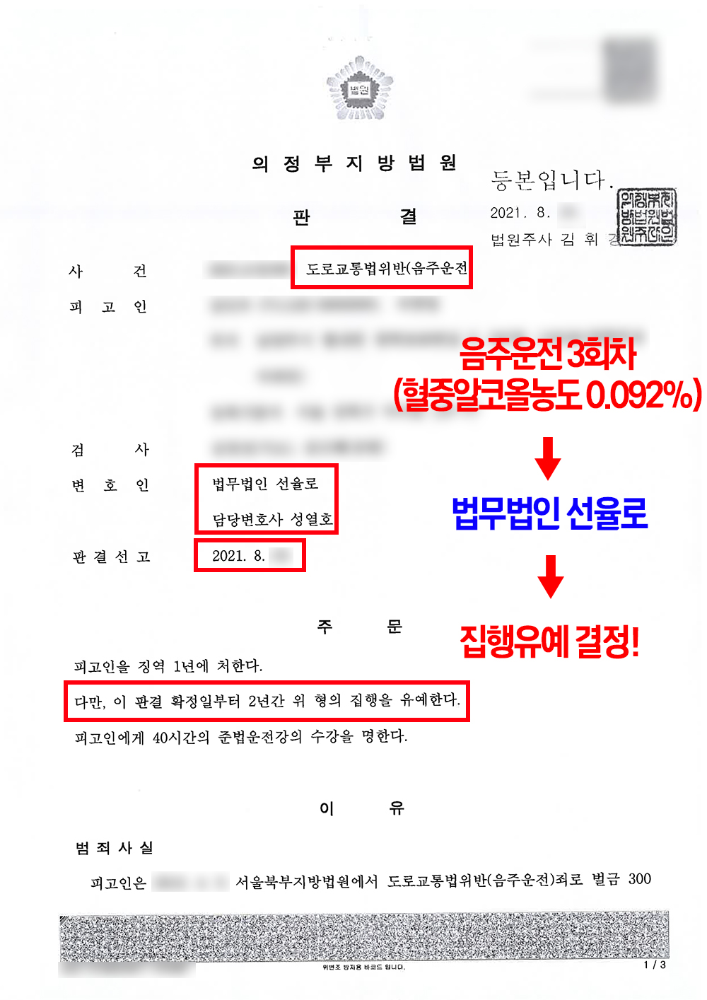 의뢰인은 현재 아내와 두 명의 자녀를 부양하고 있는 한 가정의 가장으로, 중한 처벌을 받게 된다면 남은 가족들의 생계에 큰 위협이 발생하게 되는 상황이었기에 다급한 마음으로 저희 변호인을 찾아주셨습니다. 저희 선율로 음주전담팀은 과거 비슷한 유형의 사건을 수차례 진행했던 경험이 있고, 저희만의 전략적인 노하우를 보유하고 있어 신속하게 의뢰인의 사건을 대응해 나갔습니다.