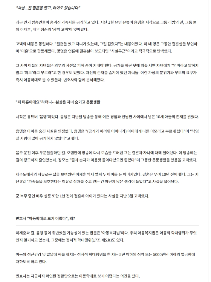 아이 있다" 연예인들의 뒤늦은 공개...아동학대로 보기 어려워, 신혁범 변호사[로톡뉴스]