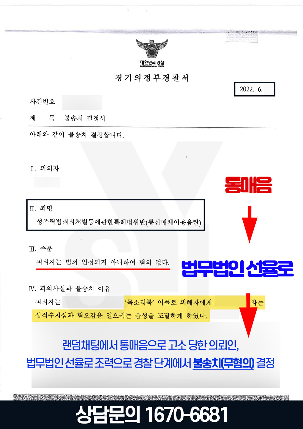 이와 같은 선율로 변호인의 노력 끝에, 혐의없음 결과를 받아낼 수 있었습니다.