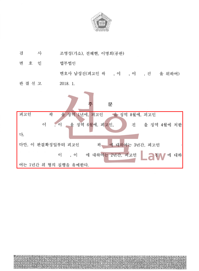 전자금융거래법위반 범행에 관하여 수원형사변호사인 본 변호인의 변소를 통해 재판부는 의뢰인 A, B 모두에게 집행유예를 선고하였습니다.