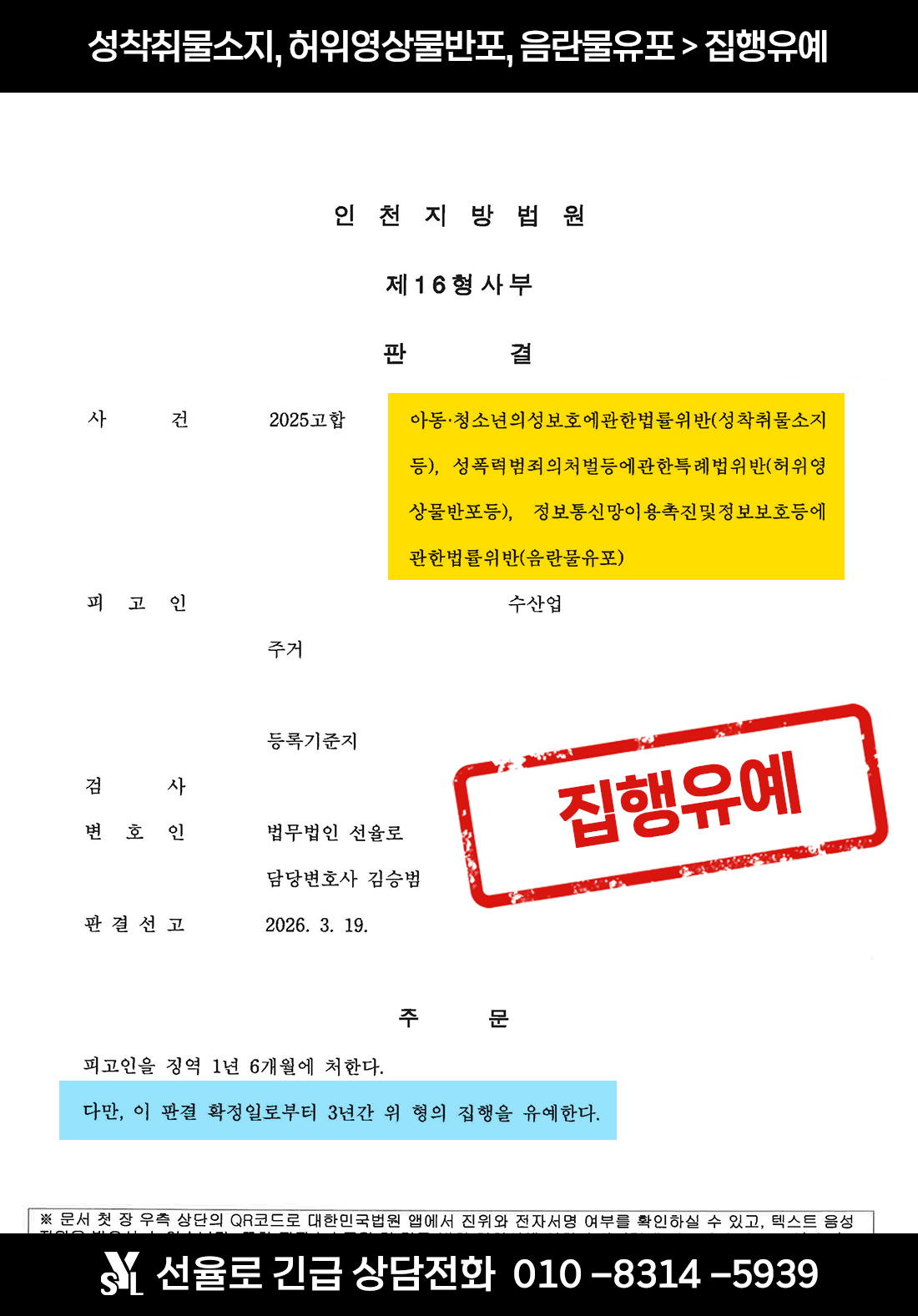 본 사건은 허위영상물 제작·유포 및 아동·청소년 성착취물 소지 등 중대한 디지털 성범죄가 복합적으로 문제 된 사안이었음에도 불구하고, 수원아청법위반변호사의 조력을 통해 진지한 반성과 가족 부양 사정 등이 참작되어 실형을 면할 수 있었던 사례입니다.